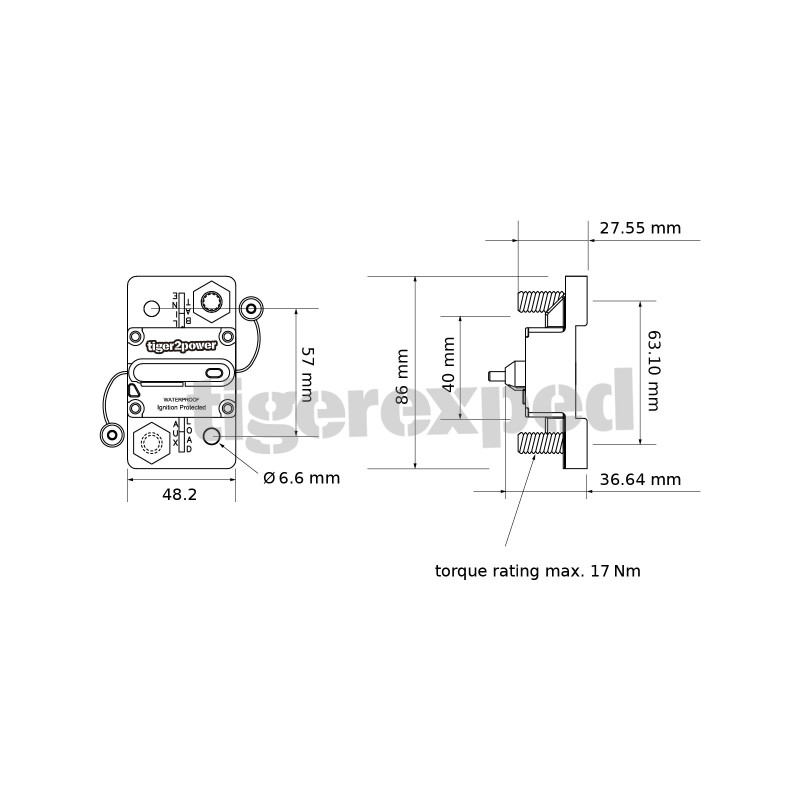 Nos disjoncteurs interrupteurs Tigerexped d'origine sont disponibles avec des boulons de connexion de taille M6 (1/4") ou M10 (3/8") et peuvent gérer des courants allant de 30 à 200 ampères.